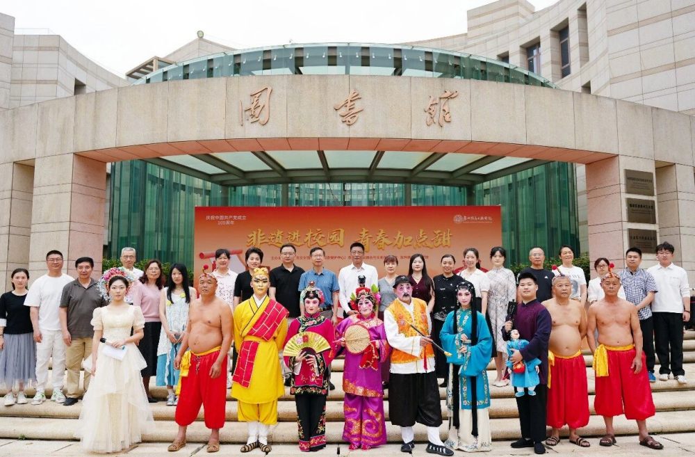 当天,泉州信息工程学院图书馆广场俨然成为闽南文化的活态展馆。木偶、南音、高甲戏、梨园戏、火鼎公婆、拍胸舞六大非遗项目轮番登台:婉转悠扬的南音浸润人心,灵动传神的木偶表演惟妙惟肖,诙谐有趣的火鼎公婆“接地气”十足,刚劲奔放的拍胸舞尽显闽南豪情。