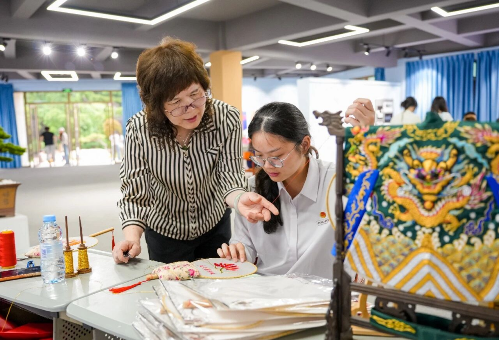 除了舞台展演,活动还邀请了安溪竹藤编、泉州花灯、泉州木偶头雕刻、泉州(李尧宝)刻纸、布雕画、漆线雕、金苍绣、簪花制作、妆糕人、彩扎等众多非遗项目的传承人走进校园,为师生打造了一堂“看得见、摸得着、做得了”的非遗体验课。学生们在传承人手把手指导下,动手体验编织、雕刻、刺绣等传统技艺,在指尖互动中感受匠心传承。