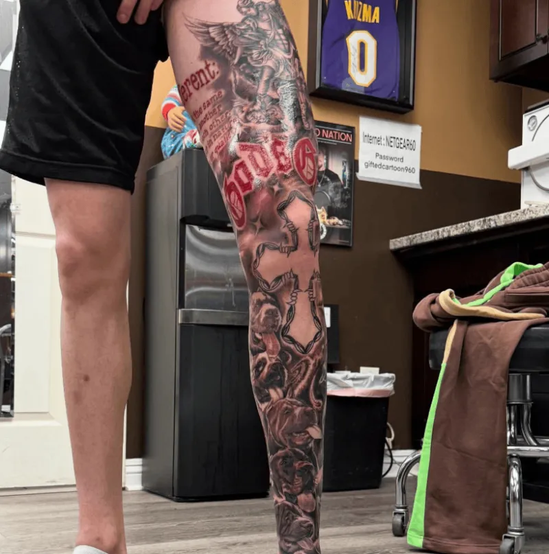 虎扑07月29日讯 今日,美国纹身师Gtatattoos社媒晒出为黄蜂球员拉梅洛-鲍尔新设计并制作的左侧腿部纹身。